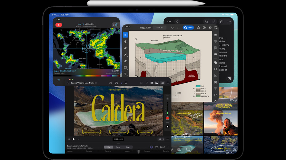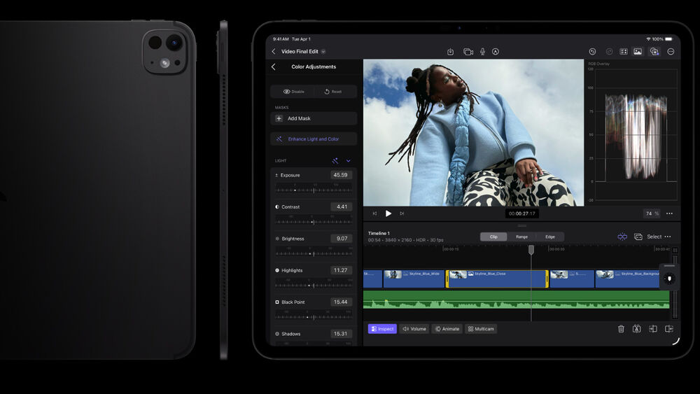 Delivering up to 4x faster AI image generation and 1.6x faster GPU performance compared to the M4 Chip, the iPad Pro is ready to take on demanding tasks. The advanced Media Engine with hardware accelerated AV1 provides power efficient, high-resolution video playback. In fact, you can play back and edit up to five 4K ProRes streams with built-in AV1 decoding. Hardware-accelerated 8K H.264, HEVC, ProRes, and ProRes RAW decoding and encoding are also supported.