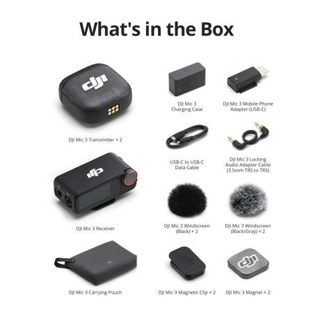 The DJI Mic 3 is a cutting-edge wireless microphone system designed to deliver professional-grade audio in a compact and user-friendly package. This 2-person advanced mini system features two high-quality transmitters, one versatile receiver, and a durable charging case—making it an all-in-one solution for interviews, vlogging, live streaming, and mobile production.